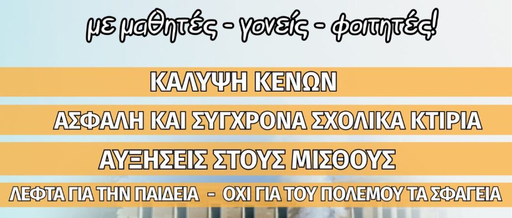 Την Πέμπτη 6 Νοεμβρίου βγαίνουμε μαζί με τους μαθητές μας ξανά στον δρόμο! Όλες και Όλοι στο Πανεκπαιδευτικό Συλλαλητήριο 6/11 στις 12μ στα Προπύλαια! Καλούν […]