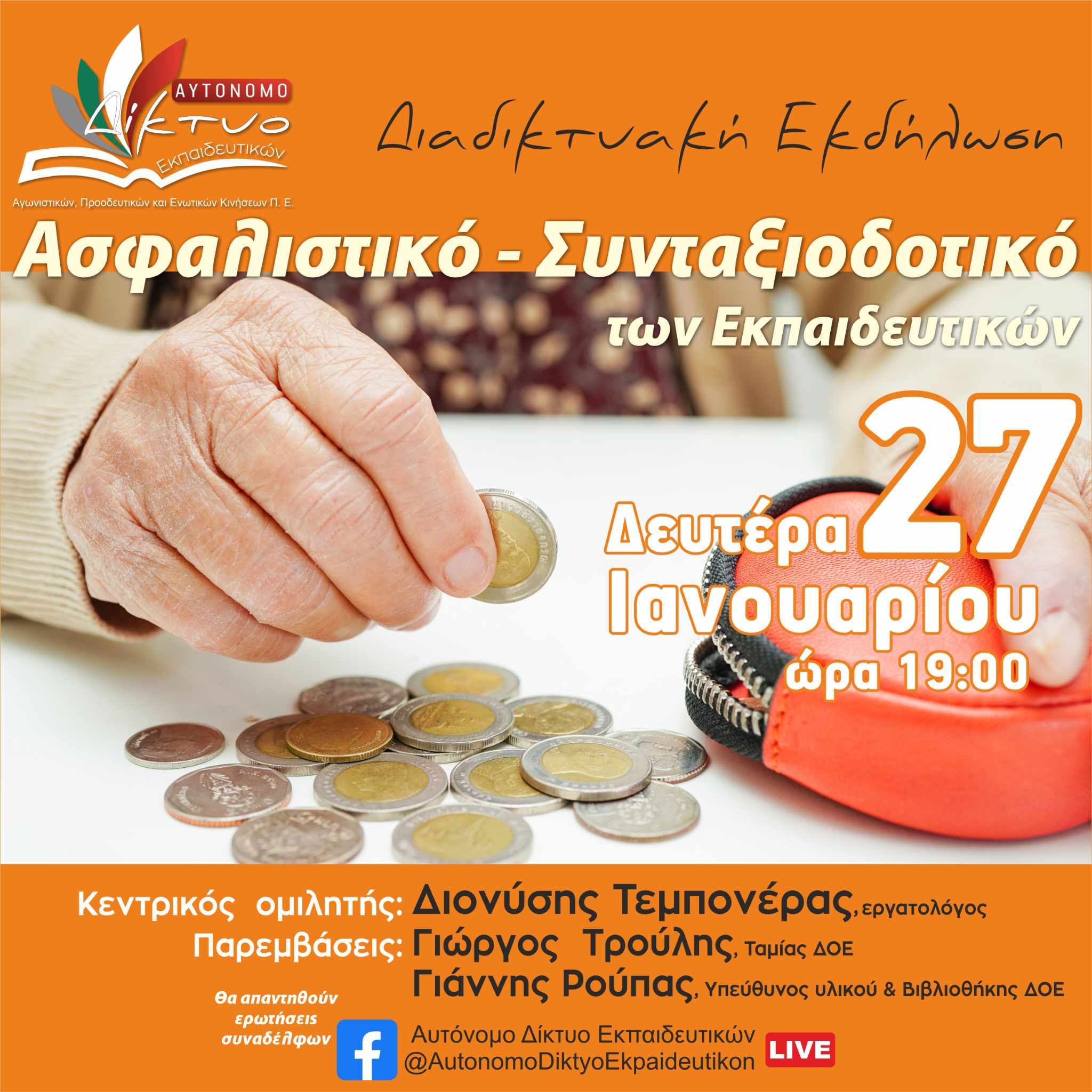 Το Αυτόνομο Δίκτυο Εκπαιδευτικών Π.Ε. σας προσκαλεί στην ανοιχτή διαδικτυακή εκδήλωση για το «Συνταξιοδοτικό-Ασφαλιστικό των εκπαιδευτικών».