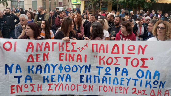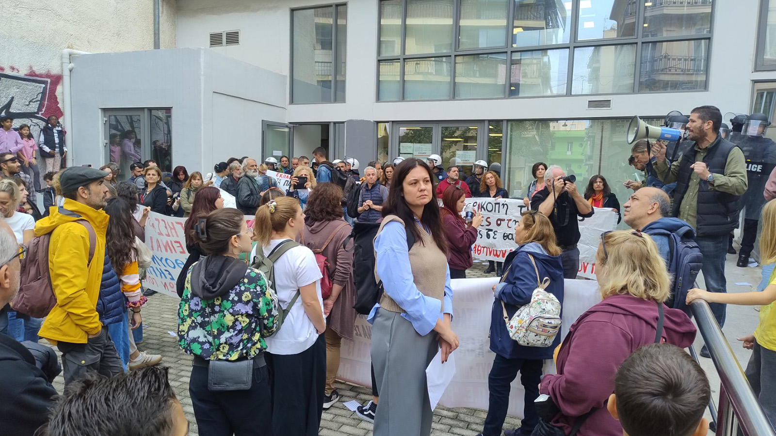 Ενώσεις και Σύλλογοι Γονέων, μαζί με σωματεία εκπαιδευτικών, συγκεντρώθηκαν για να καταγγείλουν τις συγχωνεύσεις τμημάτων που θα αποφάσιζε εκείνη την ώρα το αρμόδιο Συμβούλιο που συνεδριάζει με τηλεδιάσκεψη.