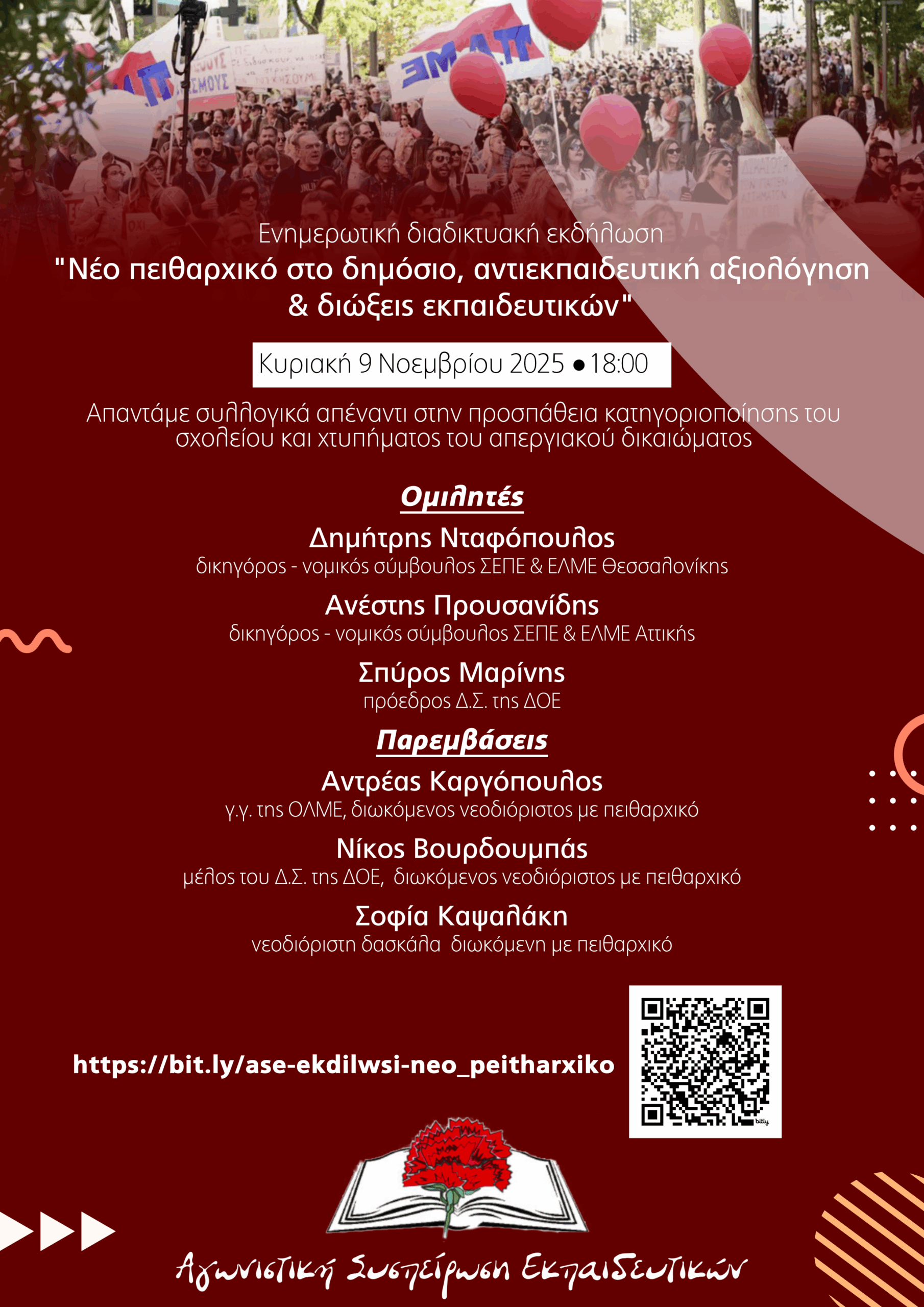 “Νέο πειθαρχικό στο δημόσιο, αντιεκπαιδευτική αξιολόγηση & διώξεις εκπαιδευτικών”