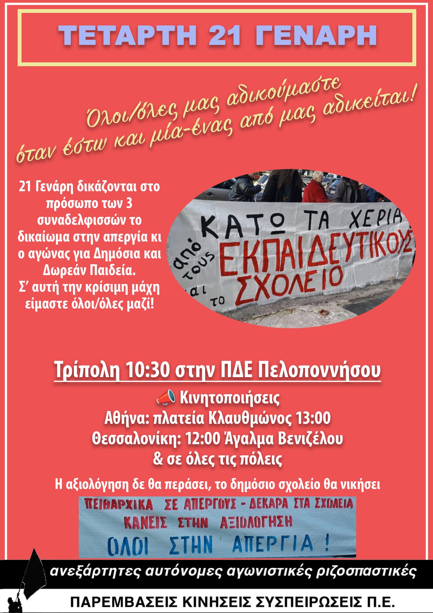 ΑΦΙΣΑ ΠΑΡΕΜΒΑΣΕΩΝ ΓΙΑ ΠΕΙΘΑΡΧΙΚΑ ΕΚΠΑΙΔΕΥΤΙΚΩΝ 21 ΓΕΝΑΡΗ ΚΑΙ ΚΙΝΗΤΟΠΟΙΗΣΕΙΣ 18 Ιανουαρίου, 2026 admin ΠΑΡΑΤΑΞΕΙΣ 0 ΑΦΙΣΑ ΠΑΡΕΜΒΑΣΕΩΝ ΓΙΑ ΠΕΙΘΑΡΧΙΚΑ ΕΚΠΑΙΔΕΥΤΙΚΩΝ 21 ΓΕΝΑΡΗ ΚΑΙ ΚΙΝΗΤΟΠΟΙΗΣΕΙΣ Views: 10 ΠΑΡΕΜΒΑΣΕΙΣ ΚΙΝΗΣΕΙΣ ΣΥΣΠΕΙΡΩΣΕΙΣ Π.Ε