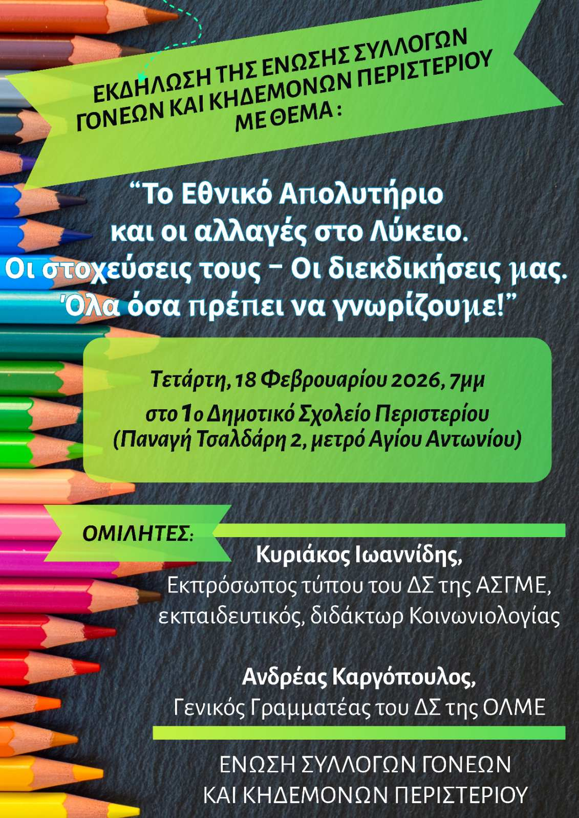 Εκδήλωση 18/02/26, 7μμ για το Εθνικό Απολυτήριο
