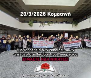 Στην Κομοτηνή γράφτηκε μια από τις πιο σημαντικές σελίδες στον αγώνα του κλάδου για ένα πραγματικά δημόσιο και δωρεάν σχολείο, που θα χωράει όλα τα παιδιά και όπου ο εκπαιδευτικός θα μπορεί να διδάσκει με το κεφάλι ψηλά.